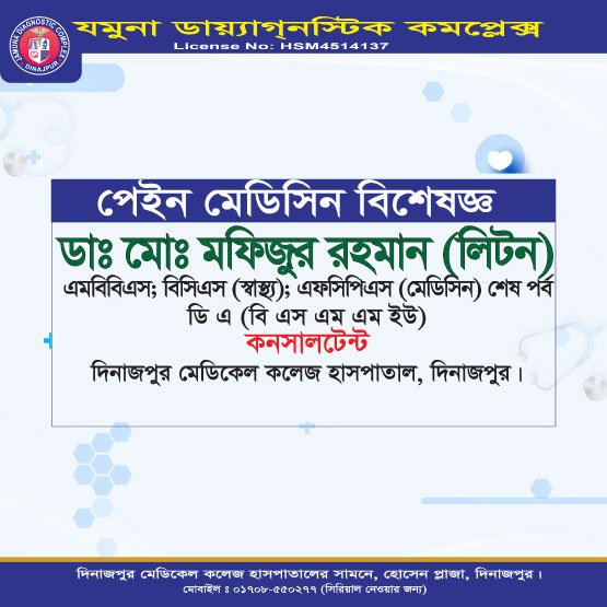 • পেইন মেডিসিন বিশেষজ্ঞ – ডা. মোঃ মহিউদ্দিন রহমান (লিটন)