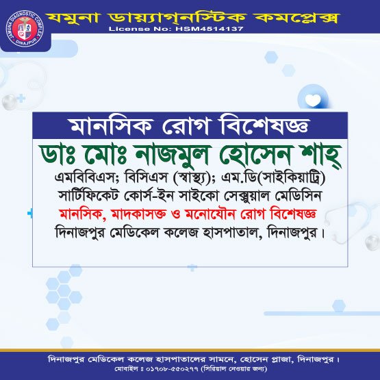 • মানসিক রোগ বিশেষজ্ঞ – ডা. মোঃ নাজমুল হোসেন শান্ত
