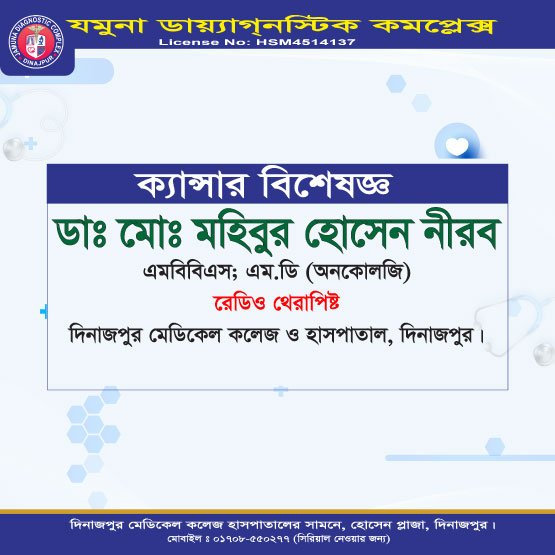 • ক্যান্সার বিশেষজ্ঞ – ডা. মোঃ তাহিরুল হোসেন নীরব